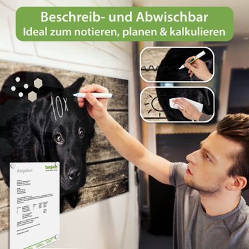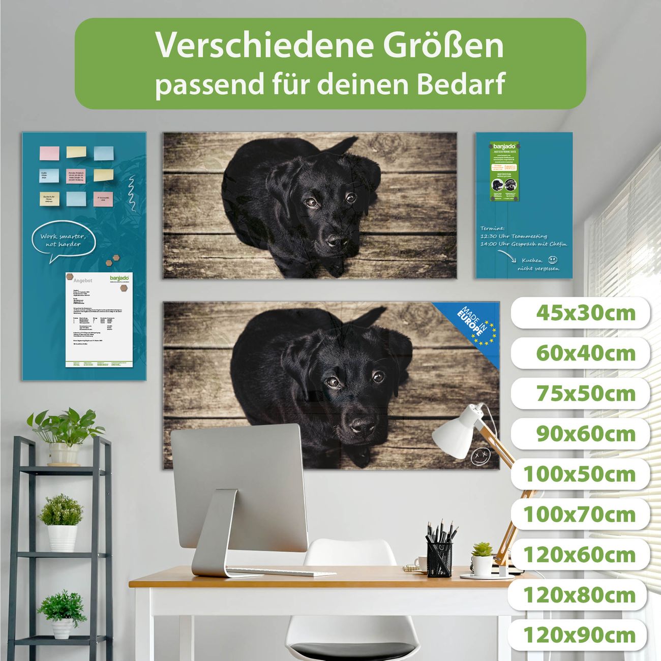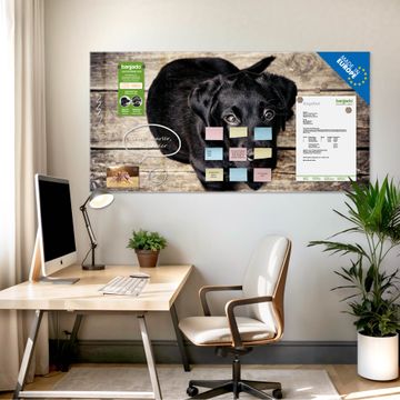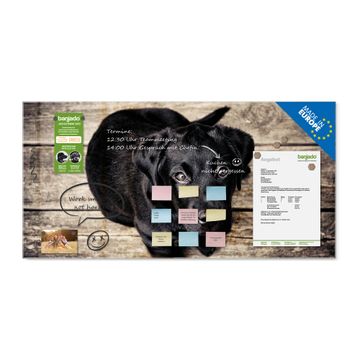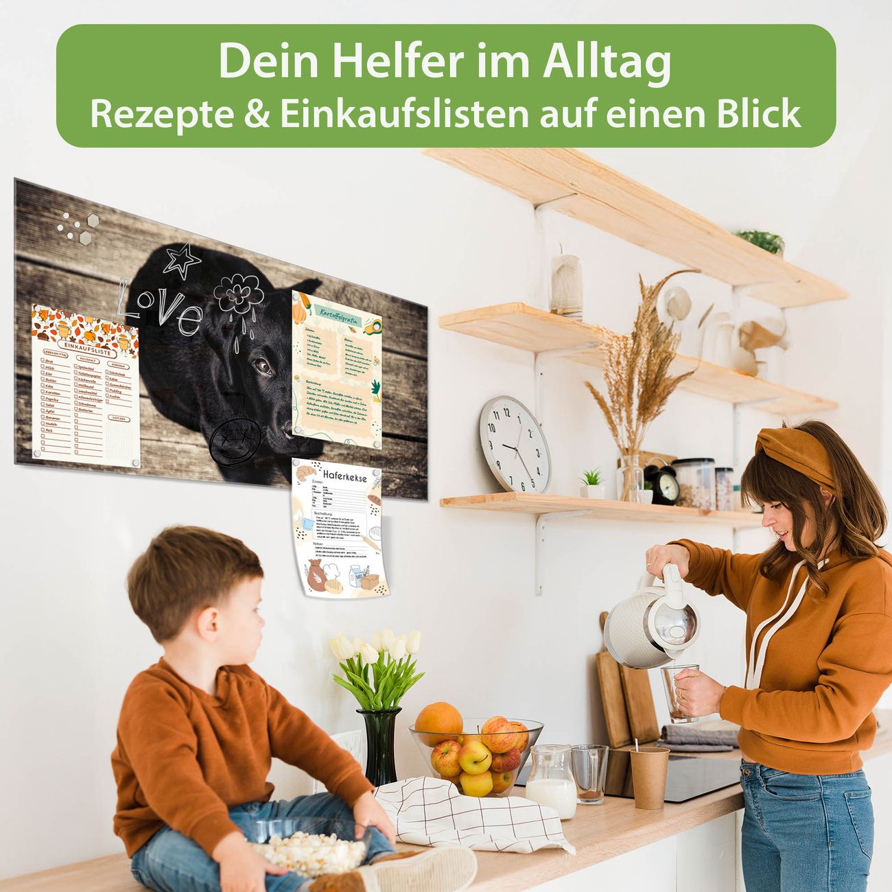 Material: 4mm Sicherheitsglas mit Metallrückwand Eigenschaften: beschreibbar, magnetisch, kratzfest Maße: 100x50x0,6cm, 7,50kg schwer Motiv Nummer 11836 Lieselotte Zubehör: inklusive 4 Neodym-Magnete