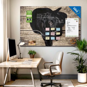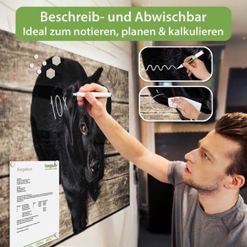 Material: 4mm Sicherheitsglas mit Metallrückwand Eigenschaften: beschreibbar, magnetisch, kratzfest Maße: 120x80x0,6cm, 14,40kg schwer Motiv Nummer 11836 Lieselotte Zubehör: inklusive 4 Neodym-Magnete
