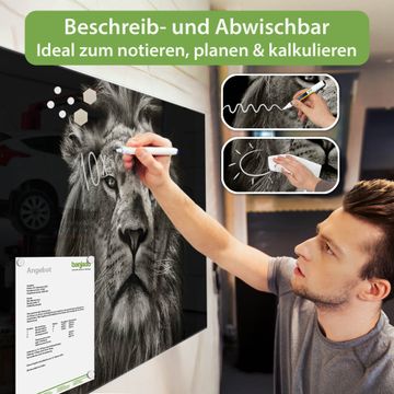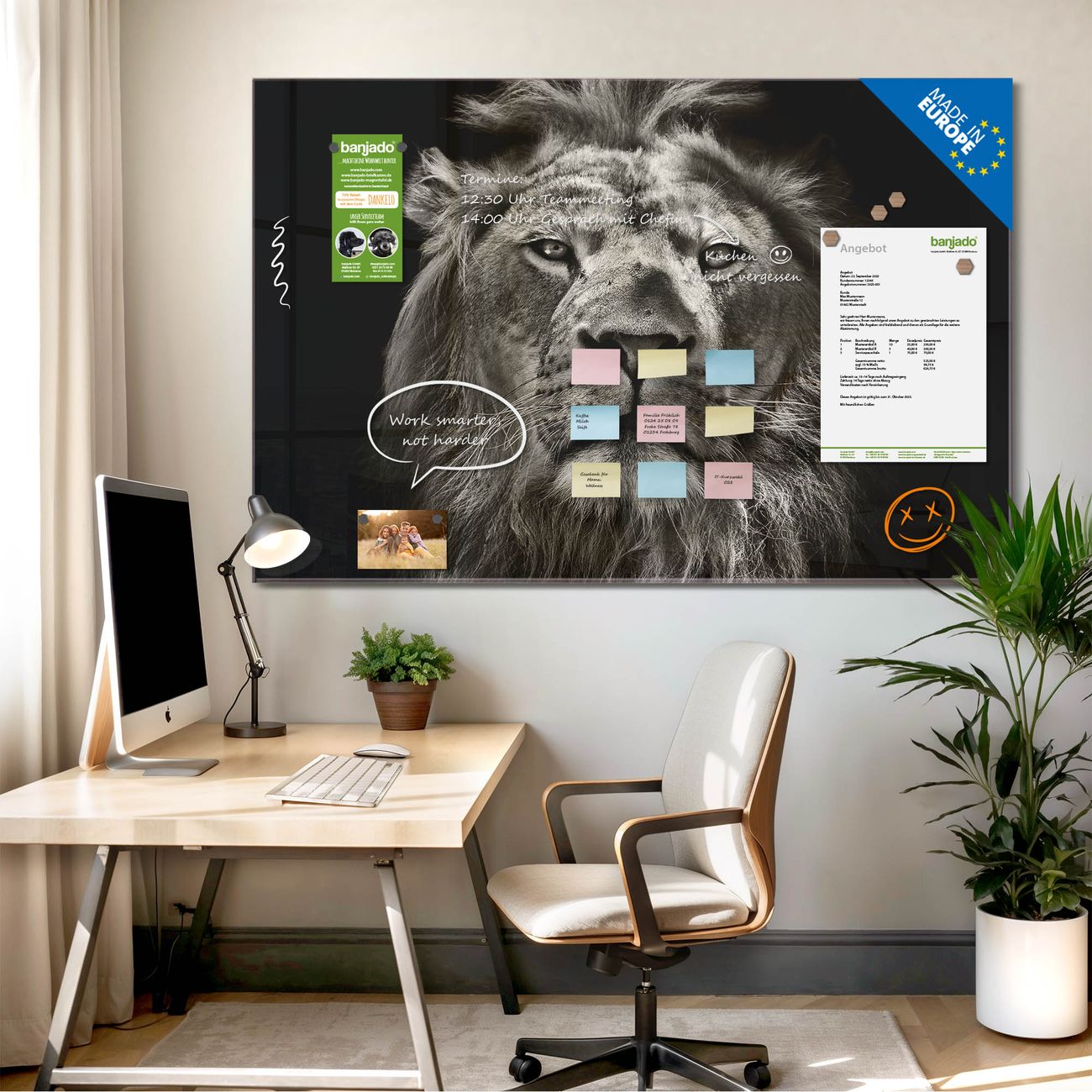 Die banjado Glas Magnettafel mit dem Motiv Motiv Löwe Porträt verbindet Funktionalität mit Stil. Sie ersetzt das Zettelchaos durch klare Strukturen und bringt dabei eine warme, natürliche Atmosphäre in Ihr Zuhause. Ob im Büro, in der Küche oder im Eingangsbereich - dieses Design-Board zieht Blicke an und sorgt für Ordnung mit Charakter.