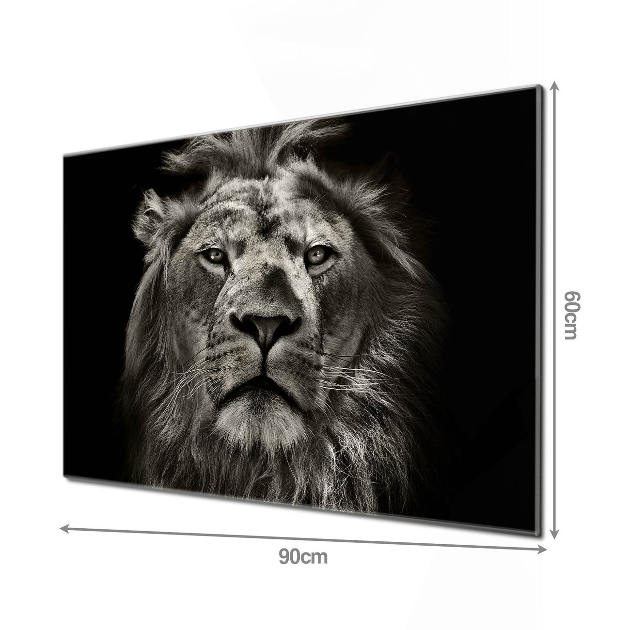 Material: 4mm Sicherheitsglas mit Metallrückwand Eigenschaften: beschreibbar, magnetisch, kratzfest Maße: 90x60x0,6cm, 8,10kg schwer Motiv Nummer 12968 Löwe Porträt Zubehör: inklusive 4 Neodym-Magnete