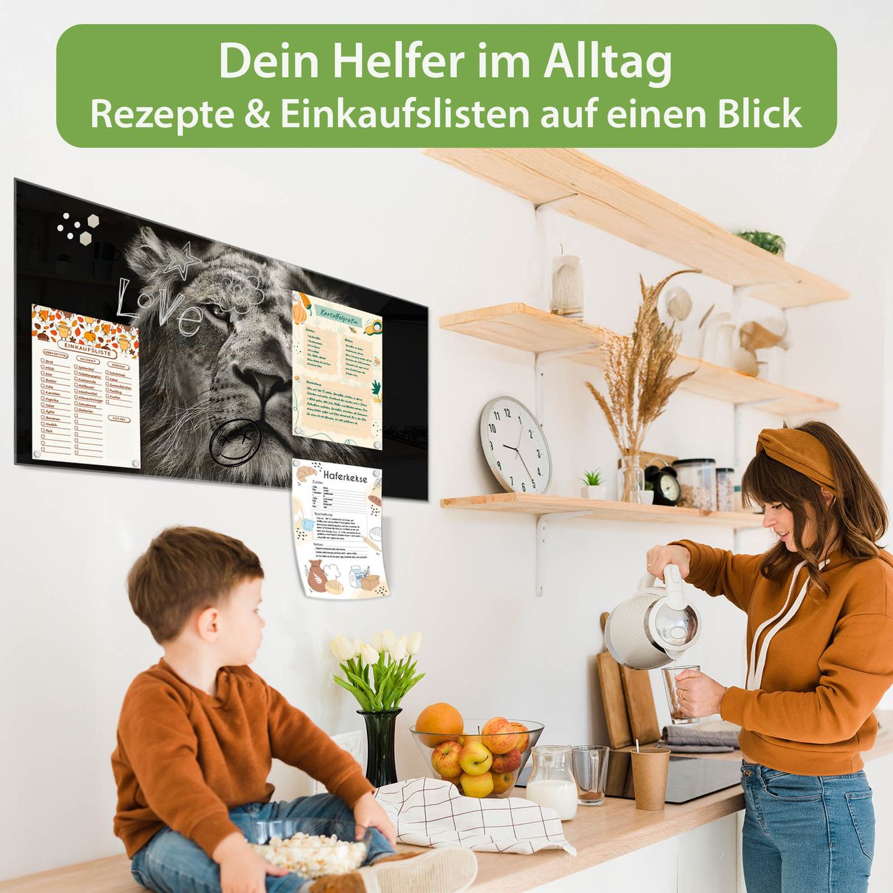Ein Stück Design, das Ihren Alltag organisiert. Schreiben, heften, inspirieren - alles an einem Ort. Qualität, die man spürt. Montage leicht gemacht. Handwerk mit Herz - veredelt in Sachsen. Einzigartiges Design mit Motiv Motiv Löwe Porträt Beschreibbare Glasoberfläche, leicht zu reinigen Starke Magnetkraft durch Stahlrückwand Inklusive 4 Neodym-Magneten Flexible Montageoptionen Handveredelt in Sachsen - Qualität, die bleibt