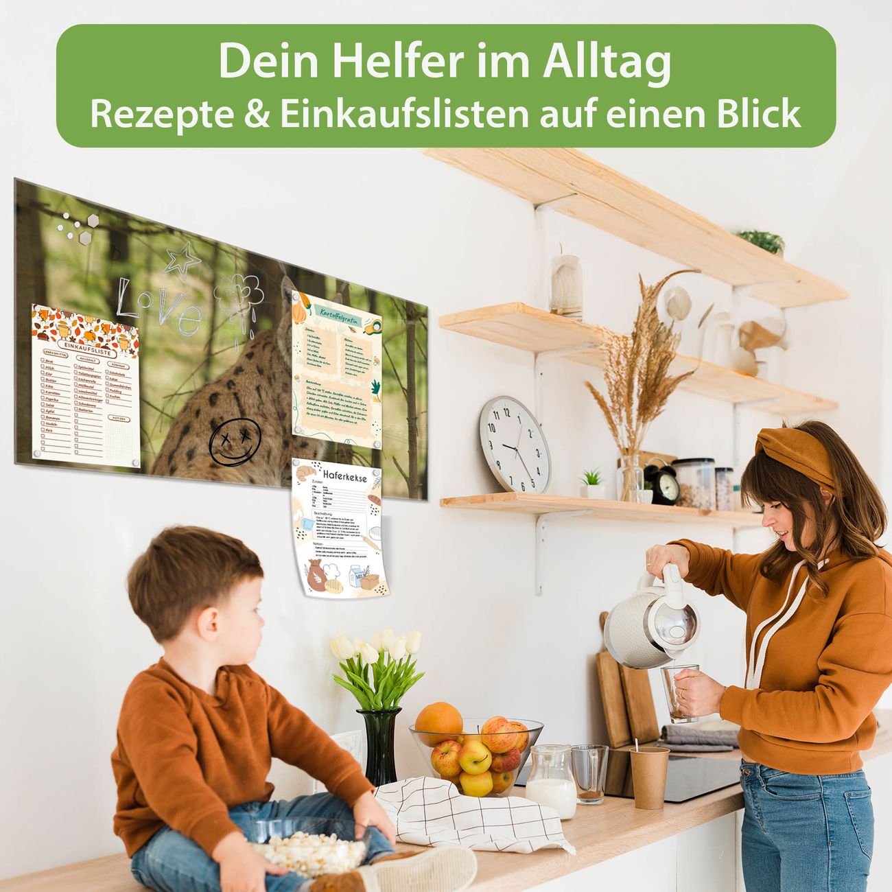 Die banjado Glas Magnettafel mit dem Motiv Motiv Luchs verbindet Funktionalität mit Stil. Sie ersetzt das Zettelchaos durch klare Strukturen und bringt dabei eine warme, natürliche Atmosphäre in Ihr Zuhause. Ob im Büro, in der Küche oder im Eingangsbereich - dieses Design-Board zieht Blicke an und sorgt für Ordnung mit Charakter.