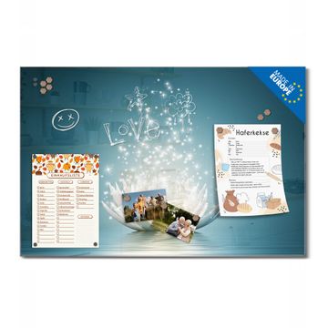 Auf der glatten Glasoberfläche lassen sich Termine, Rezepte oder Notizen ganz einfach mit Kreidestiften festhalten und rückstandslos entfernen. Starke Neodym-Magnete halten Ihre wichtigsten Erinnerungen sicher an Ort und Stelle. So entsteht Ihre ganz persönliche Ideenwand - jeden Tag neu.