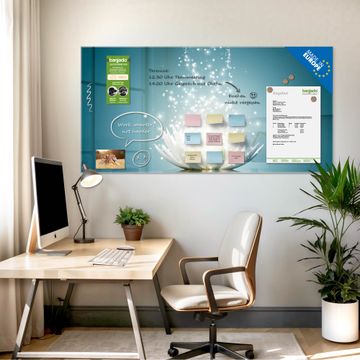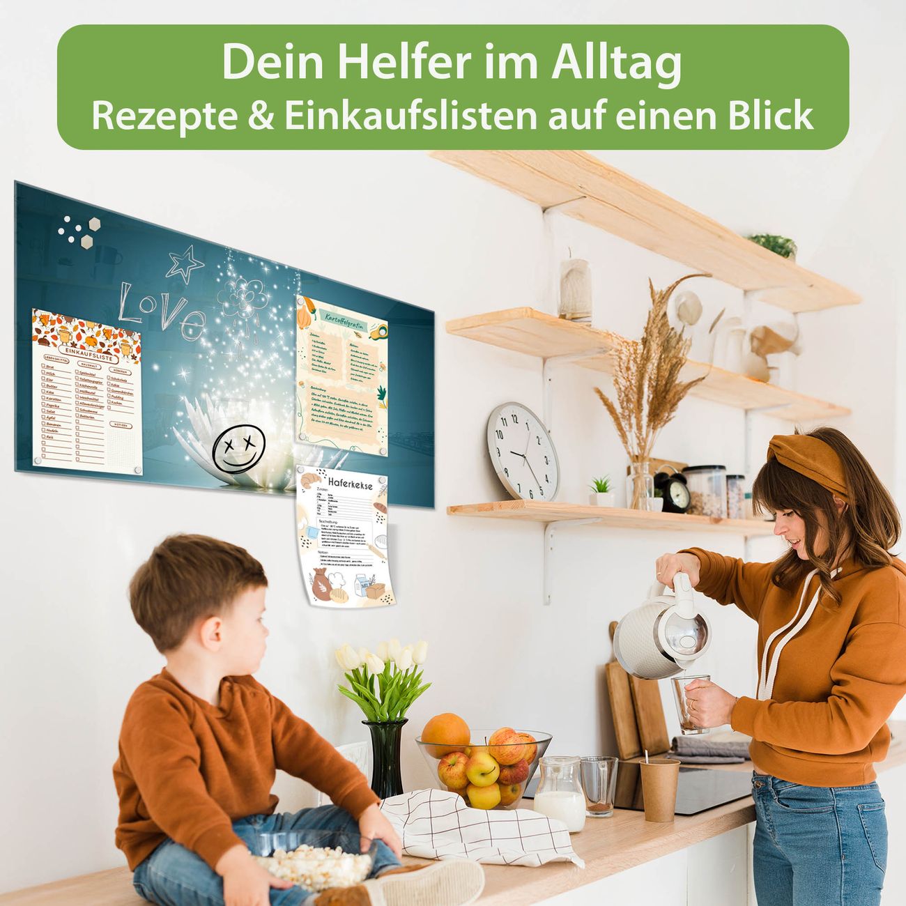 Auf der glatten Glasoberfläche lassen sich Termine, Rezepte oder Notizen ganz einfach mit Kreidestiften festhalten und rückstandslos entfernen. Starke Neodym-Magnete halten Ihre wichtigsten Erinnerungen sicher an Ort und Stelle. So entsteht Ihre ganz persönliche Ideenwand - jeden Tag neu.