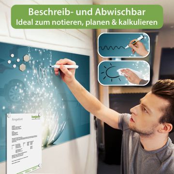 Gefertigt aus gehärtetem Sicherheitsglas mit einer magnetischen Rückwand aus Stahl überzeugt diese Magnettafel durch Stabilität und Langlebigkeit. Die Oberfläche bleibt dauerhaft brillant und pflegeleicht, selbst bei täglicher Nutzung.