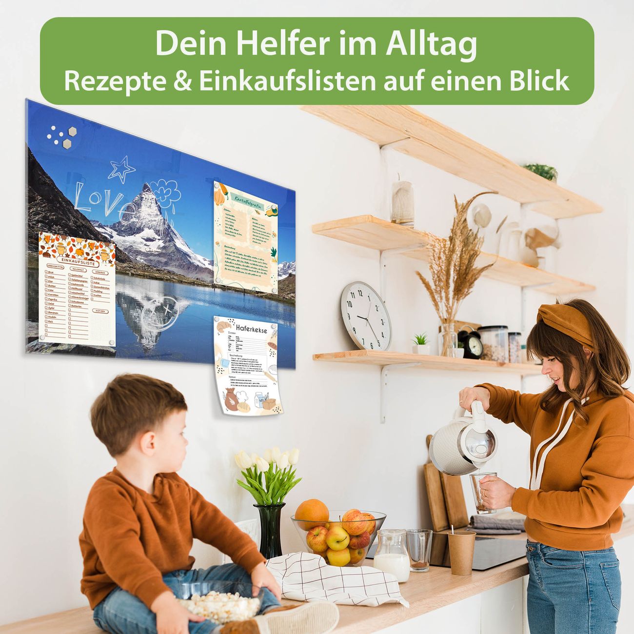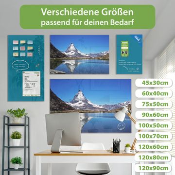 Die banjado Glas Magnettafel mit dem Motiv Motiv Matterhorn verbindet Funktionalität mit Stil. Sie ersetzt das Zettelchaos durch klare Strukturen und bringt dabei eine warme, natürliche Atmosphäre in Ihr Zuhause. Ob im Büro, in der Küche oder im Eingangsbereich - dieses Design-Board zieht Blicke an und sorgt für Ordnung mit Charakter.