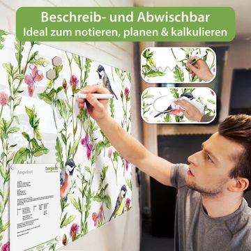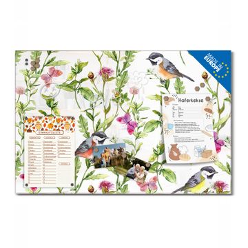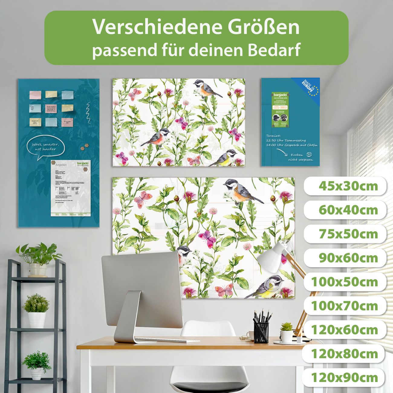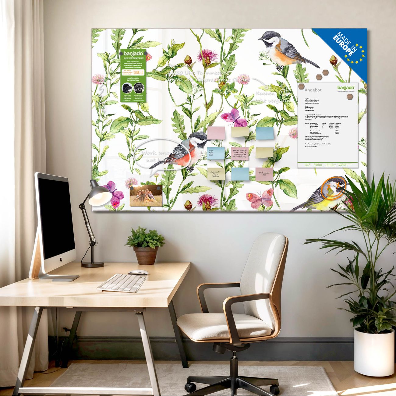 Die banjado Glas Magnettafel mit dem Motiv Motiv Meisen im Klee verbindet Funktionalität mit Stil. Sie ersetzt das Zettelchaos durch klare Strukturen und bringt dabei eine warme, natürliche Atmosphäre in Ihr Zuhause. Ob im Büro, in der Küche oder im Eingangsbereich - dieses Design-Board zieht Blicke an und sorgt für Ordnung mit Charakter.