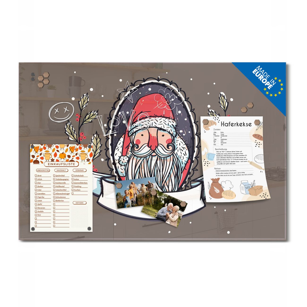 Material: 4mm Sicherheitsglas mit Metallrückwand Eigenschaften: beschreibbar, magnetisch, kratzfest Maße: 75x50x0,6cm, 5,63kg schwer Motiv Nummer 12965 Merry XMAS Zubehör: inklusive 4 Neodym-Magnete