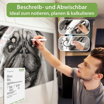 Die banjado Glas Magnettafel mit dem Motiv Motiv Mops Porträt verbindet Funktionalität mit Stil. Sie ersetzt das Zettelchaos durch klare Strukturen und bringt dabei eine warme, natürliche Atmosphäre in Ihr Zuhause. Ob im Büro, in der Küche oder im Eingangsbereich - dieses Design-Board zieht Blicke an und sorgt für Ordnung mit Charakter.