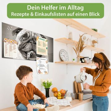 Ein Stück Design, das Ihren Alltag organisiert. Schreiben, heften, inspirieren - alles an einem Ort. Qualität, die man spürt. Montage leicht gemacht. Handwerk mit Herz - veredelt in Sachsen. Einzigartiges Design mit Motiv Motiv Mops Porträt Beschreibbare Glasoberfläche, leicht zu reinigen Starke Magnetkraft durch Stahlrückwand Inklusive 4 Neodym-Magneten Flexible Montageoptionen Handveredelt in Sachsen - Qualität, die bleibt