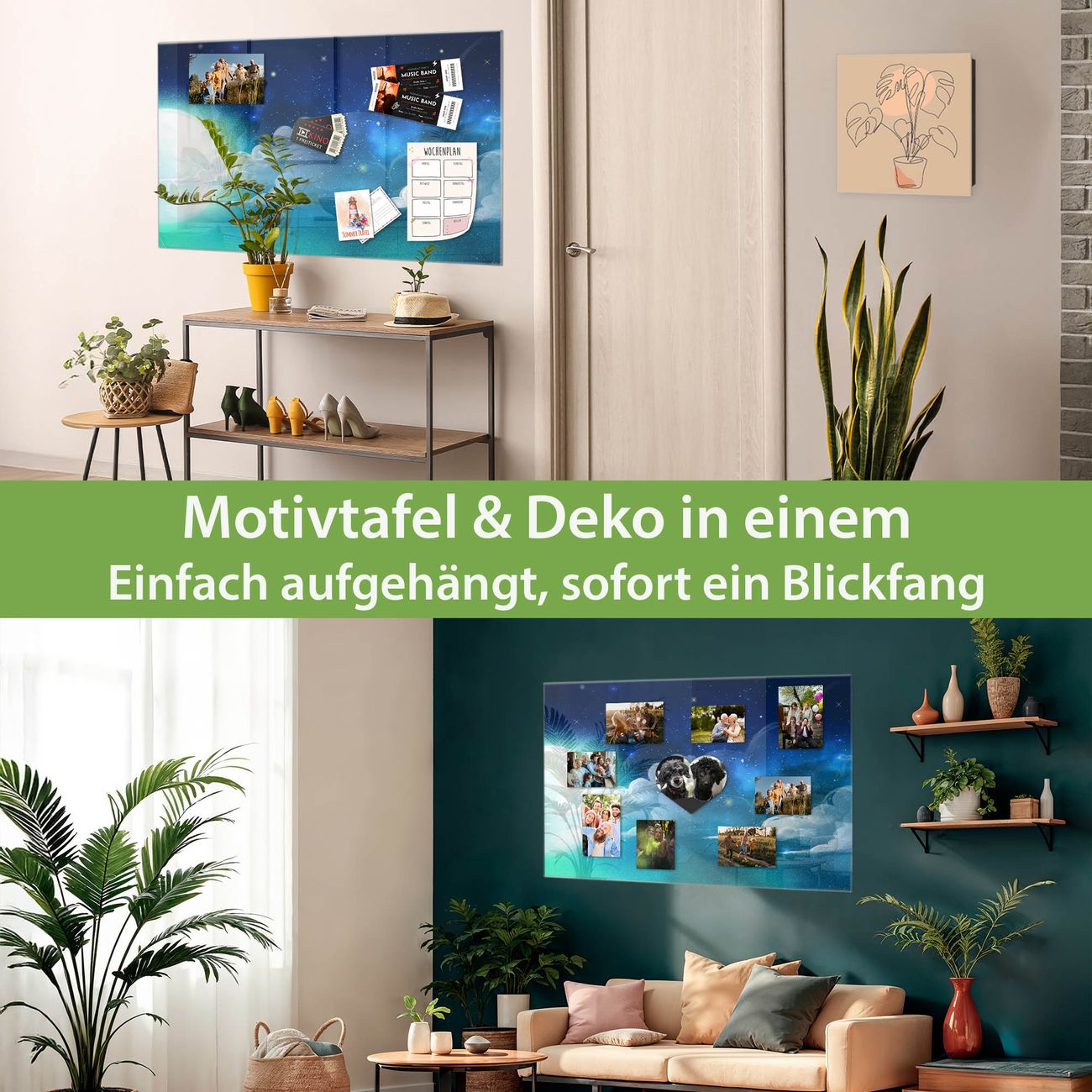Die banjado Glas Magnettafel mit dem Motiv Motiv Nachthimmel 1 verbindet Funktionalität mit Stil. Sie ersetzt das Zettelchaos durch klare Strukturen und bringt dabei eine warme, natürliche Atmosphäre in Ihr Zuhause. Ob im Büro, in der Küche oder im Eingangsbereich - dieses Design-Board zieht Blicke an und sorgt für Ordnung mit Charakter.