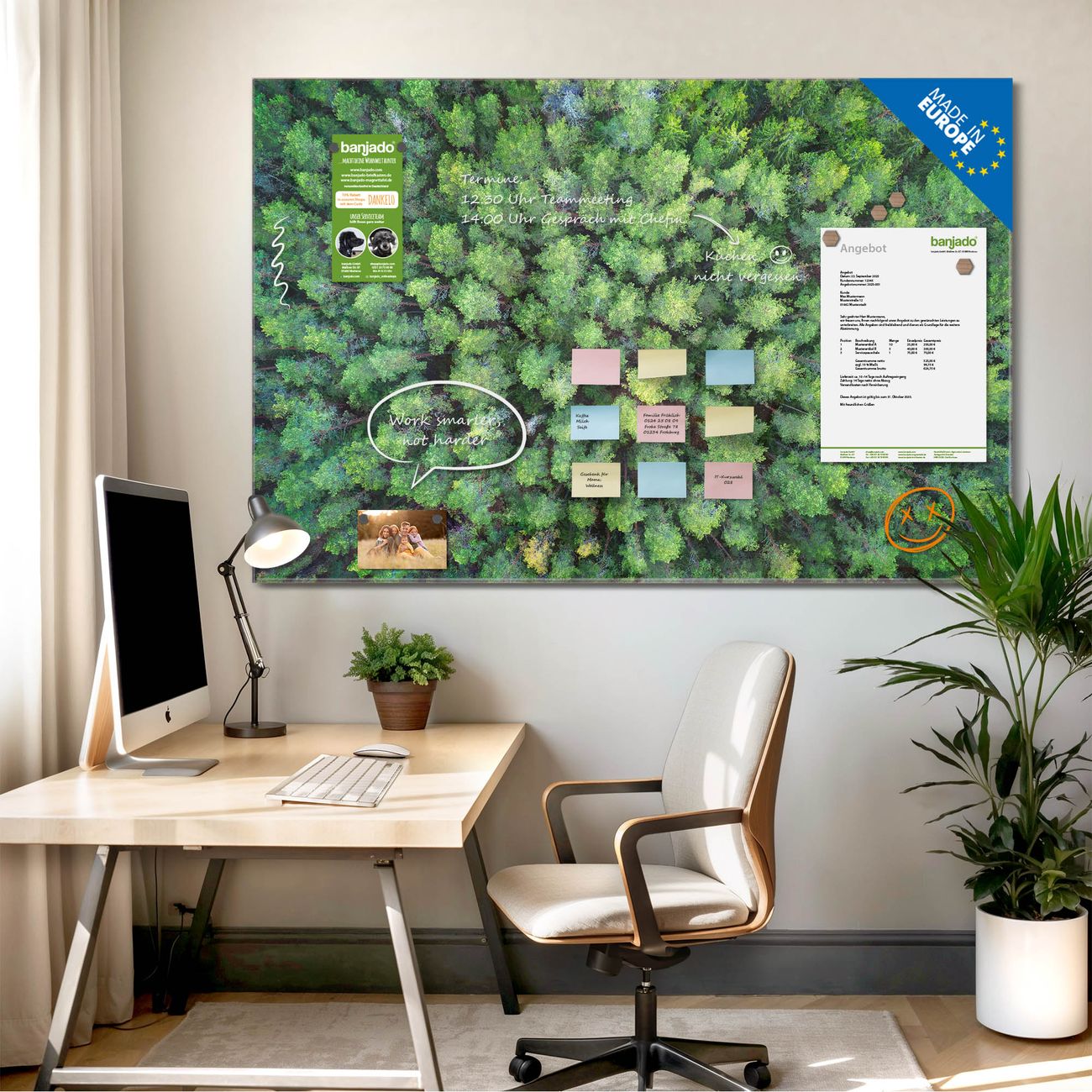 Die banjado Glas Magnettafel mit dem Motiv Motiv Nadelwald verbindet Funktionalität mit Stil. Sie ersetzt das Zettelchaos durch klare Strukturen und bringt dabei eine warme, natürliche Atmosphäre in Ihr Zuhause. Ob im Büro, in der Küche oder im Eingangsbereich - dieses Design-Board zieht Blicke an und sorgt für Ordnung mit Charakter.