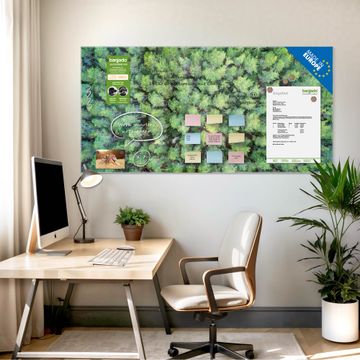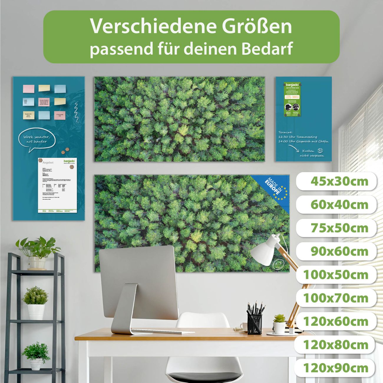 Material: 4mm Sicherheitsglas mit Metallrückwand Eigenschaften: beschreibbar, magnetisch, kratzfest Maße: 120x60x0,6cm, 10,80kg schwer Motiv Nummer 12872 Nadelwald Zubehör: inklusive 4 Neodym-Magnete