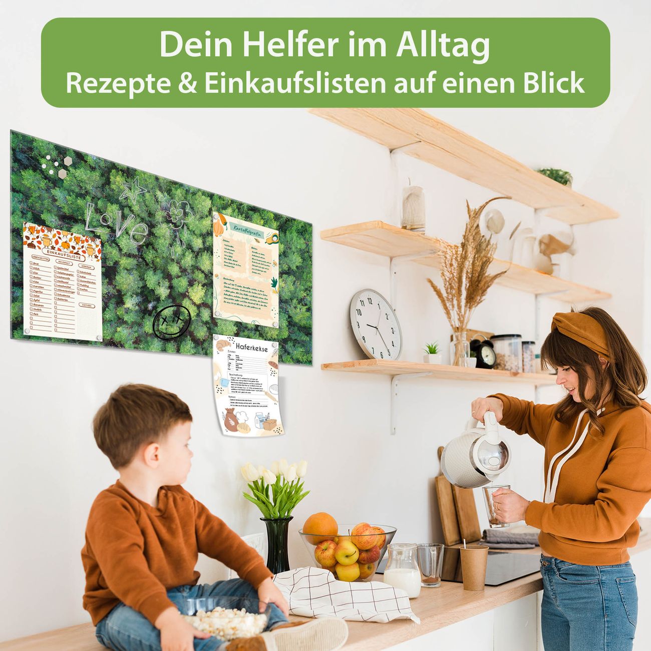 Ein Stück Design, das Ihren Alltag organisiert. Schreiben, heften, inspirieren - alles an einem Ort. Qualität, die man spürt. Montage leicht gemacht. Handwerk mit Herz - veredelt in Sachsen. Einzigartiges Design mit Motiv Motiv Nadelwald Beschreibbare Glasoberfläche, leicht zu reinigen Starke Magnetkraft durch Stahlrückwand Inklusive 4 Neodym-Magneten Flexible Montageoptionen Handveredelt in Sachsen - Qualität, die bleibt