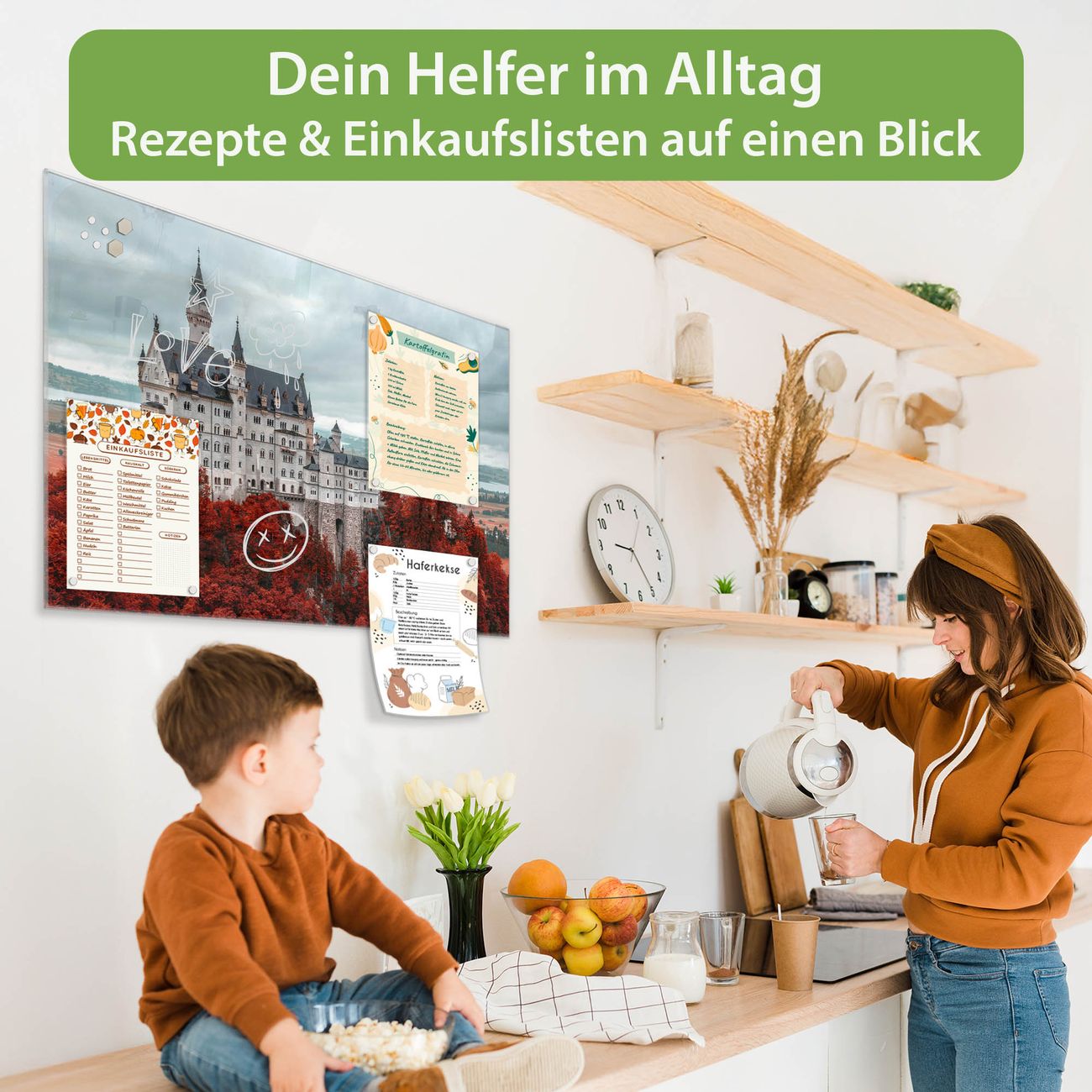 Ein Stück Design, das Ihren Alltag organisiert. Schreiben, heften, inspirieren - alles an einem Ort. Qualität, die man spürt. Montage leicht gemacht. Handwerk mit Herz - veredelt in Sachsen. Einzigartiges Design mit Motiv Motiv Neuschwanstein Beschreibbare Glasoberfläche, leicht zu reinigen Starke Magnetkraft durch Stahlrückwand Inklusive 4 Neodym-Magneten Flexible Montageoptionen Handveredelt in Sachsen - Qualität, die bleibt