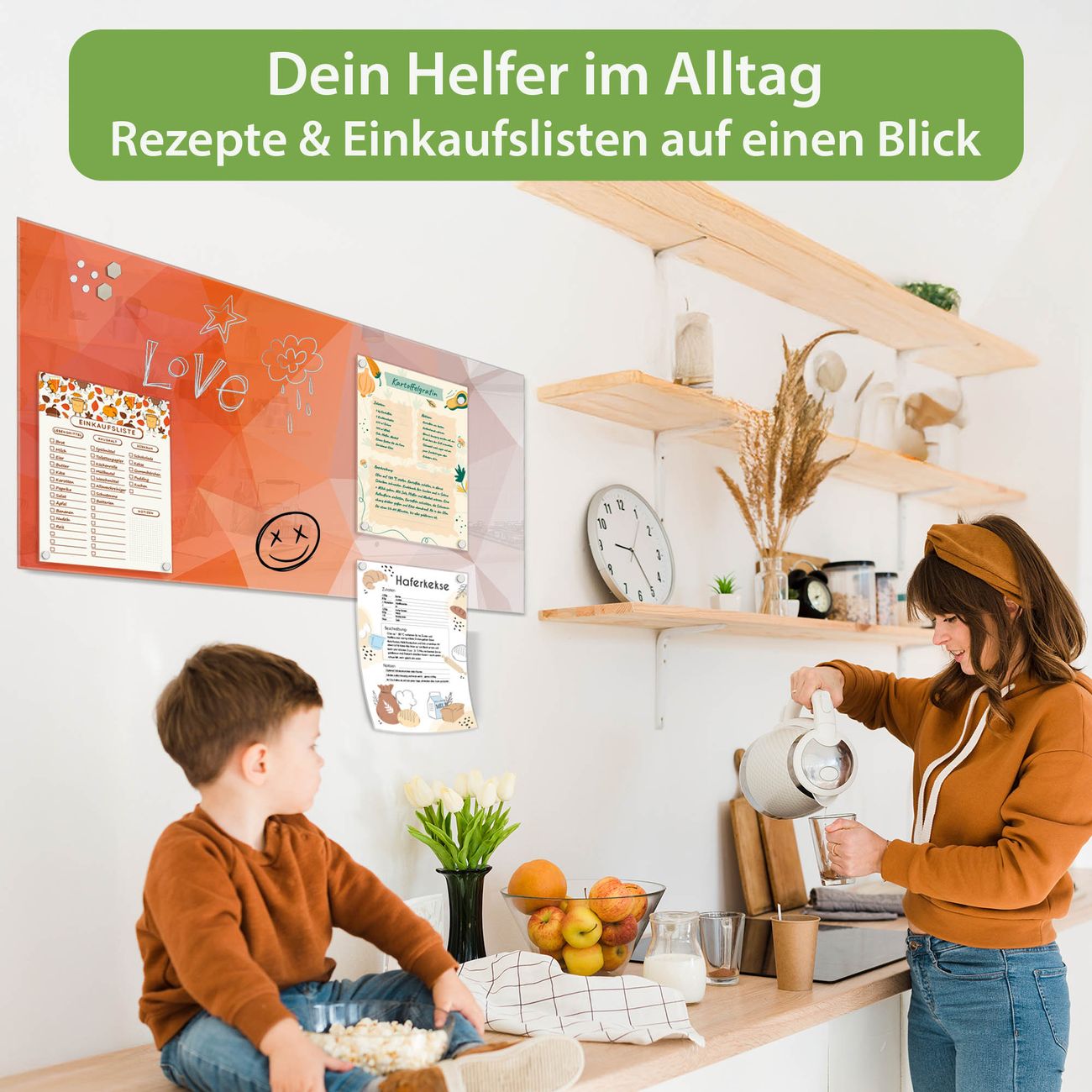 Ein Stück Design, das Ihren Alltag organisiert. Schreiben, heften, inspirieren - alles an einem Ort. Qualität, die man spürt. Montage leicht gemacht. Handwerk mit Herz - veredelt in Sachsen. Einzigartiges Design mit Motiv Motiv Orange Polygon Beschreibbare Glasoberfläche, leicht zu reinigen Starke Magnetkraft durch Stahlrückwand Inklusive 4 Neodym-Magneten Flexible Montageoptionen Handveredelt in Sachsen - Qualität, die bleibt