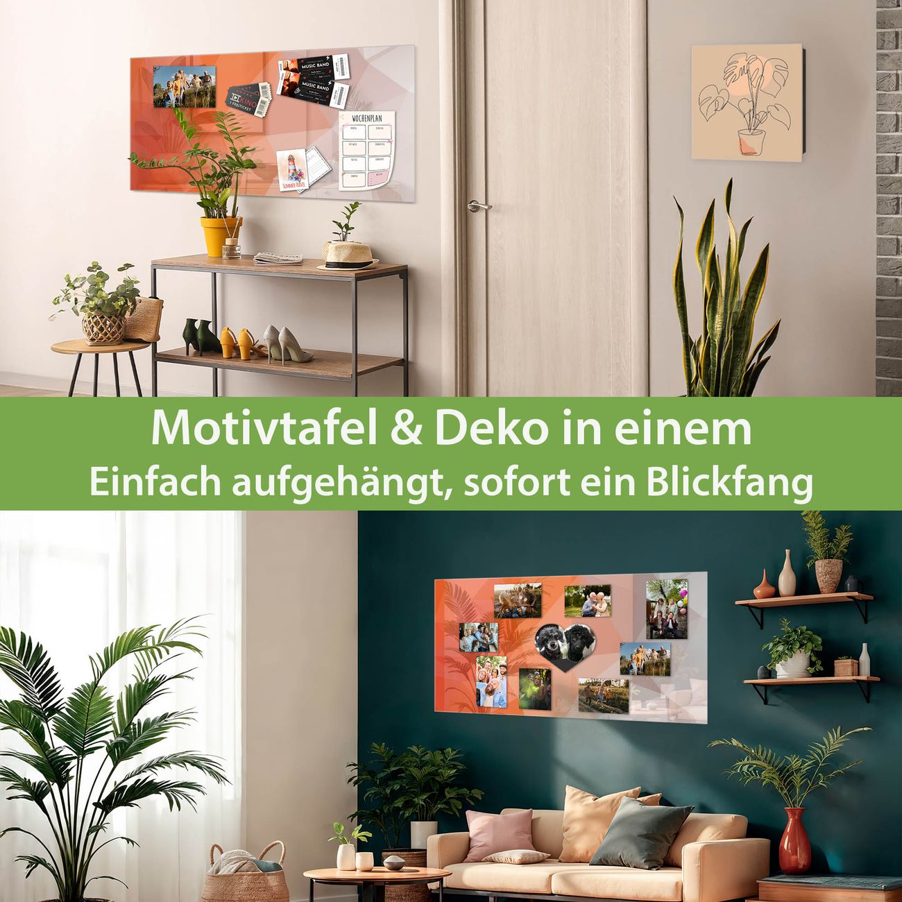 Die banjado Glas Magnettafel mit dem Motiv Motiv Orange Polygon verbindet Funktionalität mit Stil. Sie ersetzt das Zettelchaos durch klare Strukturen und bringt dabei eine warme, natürliche Atmosphäre in Ihr Zuhause. Ob im Büro, in der Küche oder im Eingangsbereich - dieses Design-Board zieht Blicke an und sorgt für Ordnung mit Charakter.