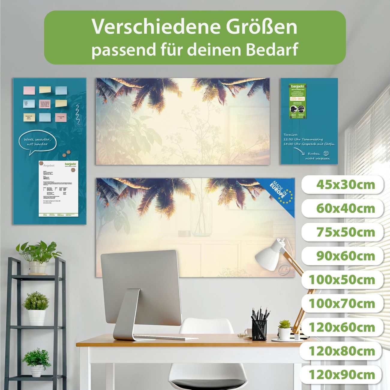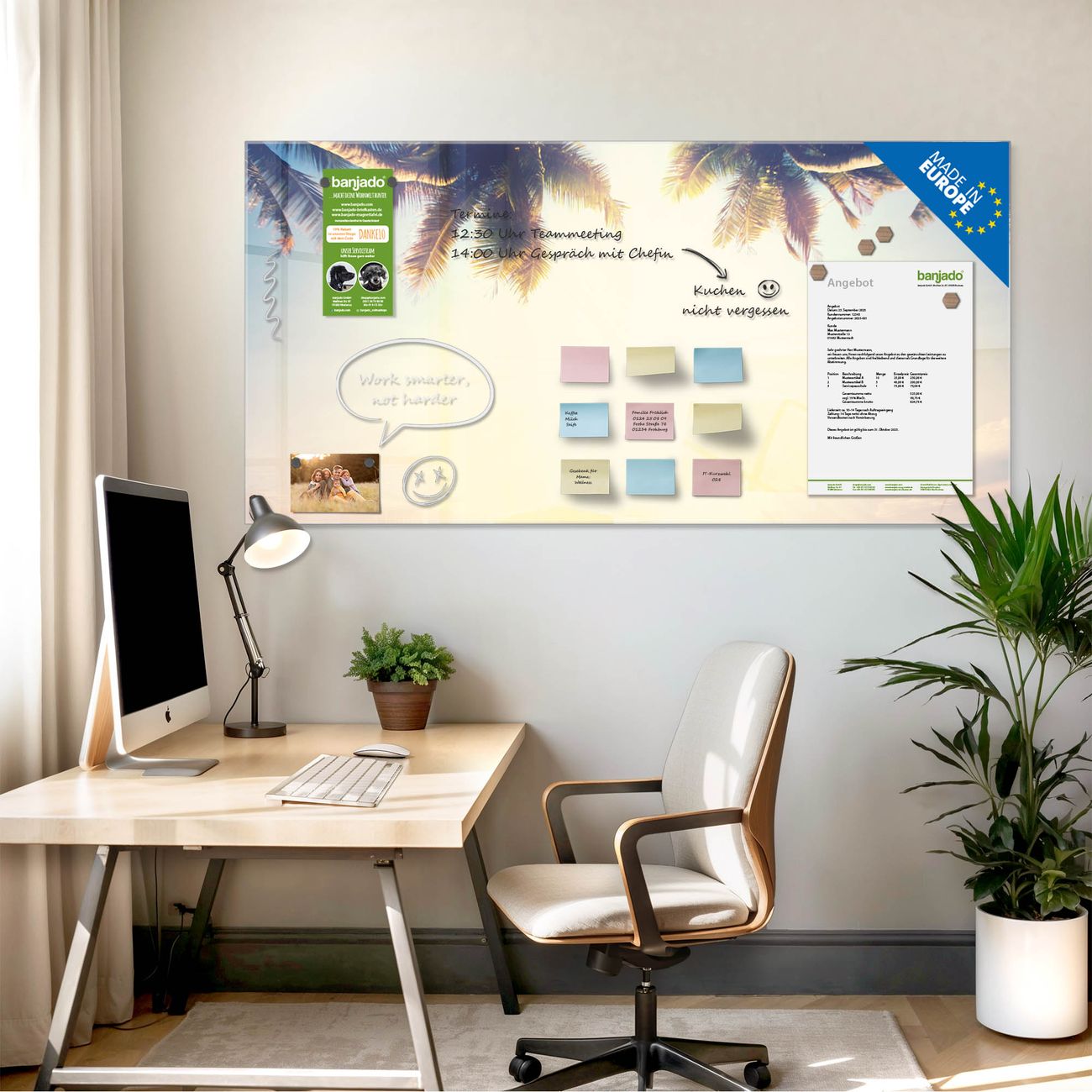 Jede Glas Magnettafel wird in unserer Werkstatt von Hand gefertigt und sorgfältig geprüft. So erhalten Sie ein echtes Qualitätsprodukt, das Funktion und Ästhetik perfekt vereint.?? Warum banjado?