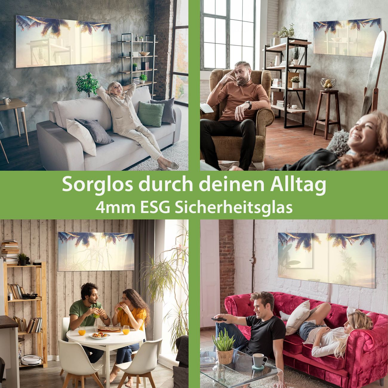 Material: 4mm Sicherheitsglas mit Metallrückwand Eigenschaften: beschreibbar, magnetisch, kratzfest Maße: 120x60x0,6cm, 10,80kg schwer Motiv Nummer 12980 Paradis Zubehör: inklusive 4 Neodym-Magnete