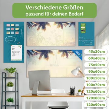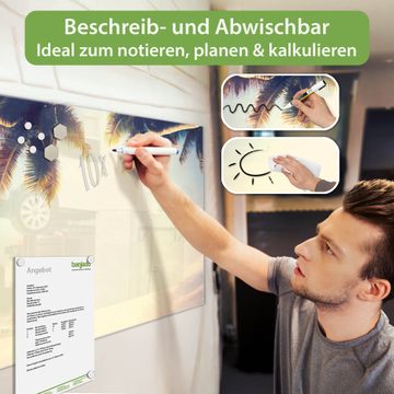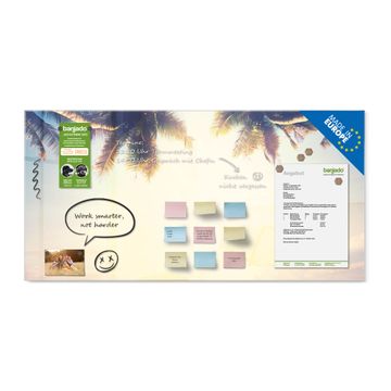 Die banjado Glas Magnettafel mit dem Motiv Motiv Paradis verbindet Funktionalität mit Stil. Sie ersetzt das Zettelchaos durch klare Strukturen und bringt dabei eine warme, natürliche Atmosphäre in Ihr Zuhause. Ob im Büro, in der Küche oder im Eingangsbereich - dieses Design-Board zieht Blicke an und sorgt für Ordnung mit Charakter.