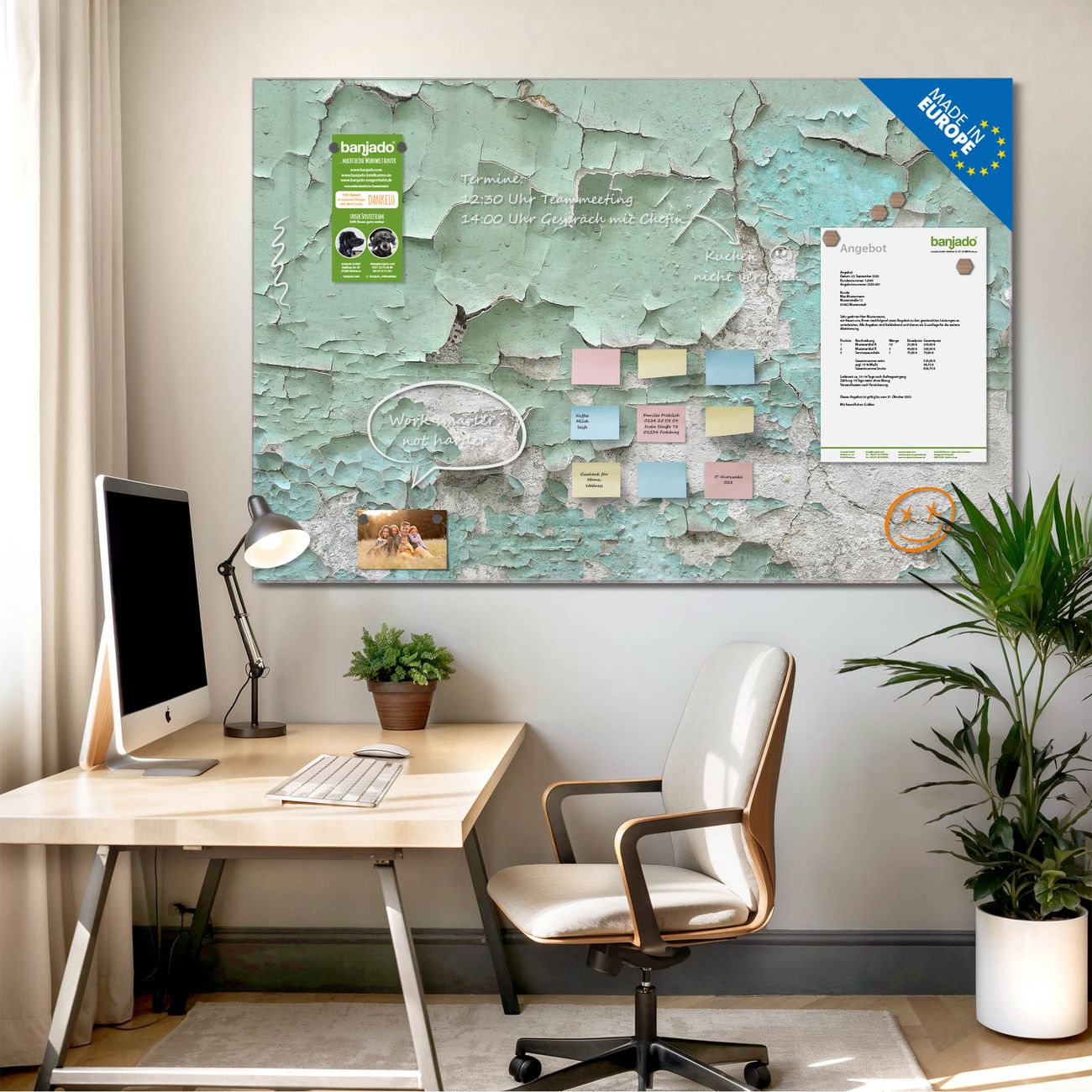 Die banjado Glas Magnettafel mit dem Motiv Motiv Patina Mint verbindet Funktionalität mit Stil. Sie ersetzt das Zettelchaos durch klare Strukturen und bringt dabei eine warme, natürliche Atmosphäre in Ihr Zuhause. Ob im Büro, in der Küche oder im Eingangsbereich - dieses Design-Board zieht Blicke an und sorgt für Ordnung mit Charakter.