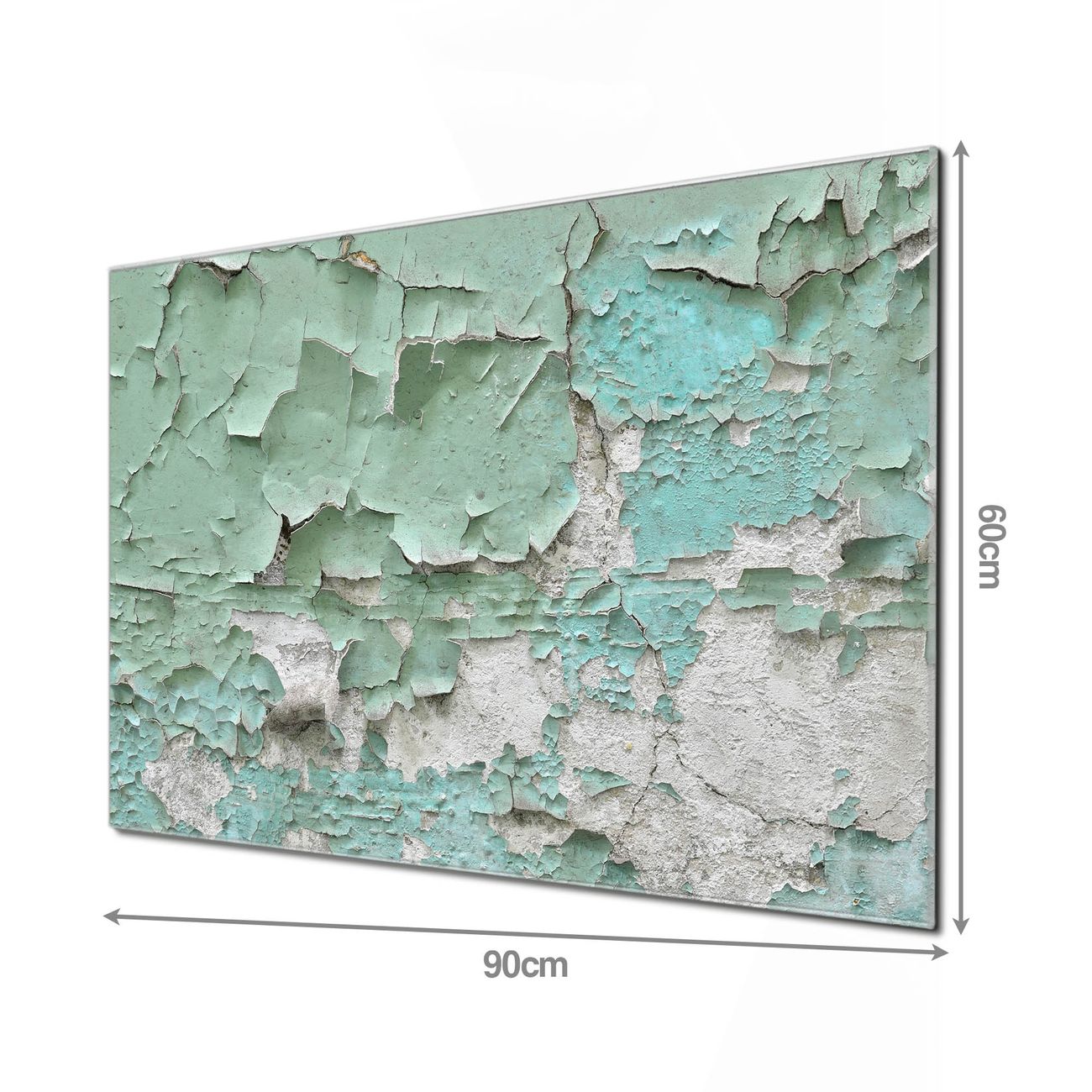 Material: 4mm Sicherheitsglas mit Metallrückwand Eigenschaften: beschreibbar, magnetisch, kratzfest Maße: 90x60x0,6cm, 8,10kg schwer Motiv Nummer 12972 Patina Mint Zubehör: inklusive 4 Neodym-Magnete