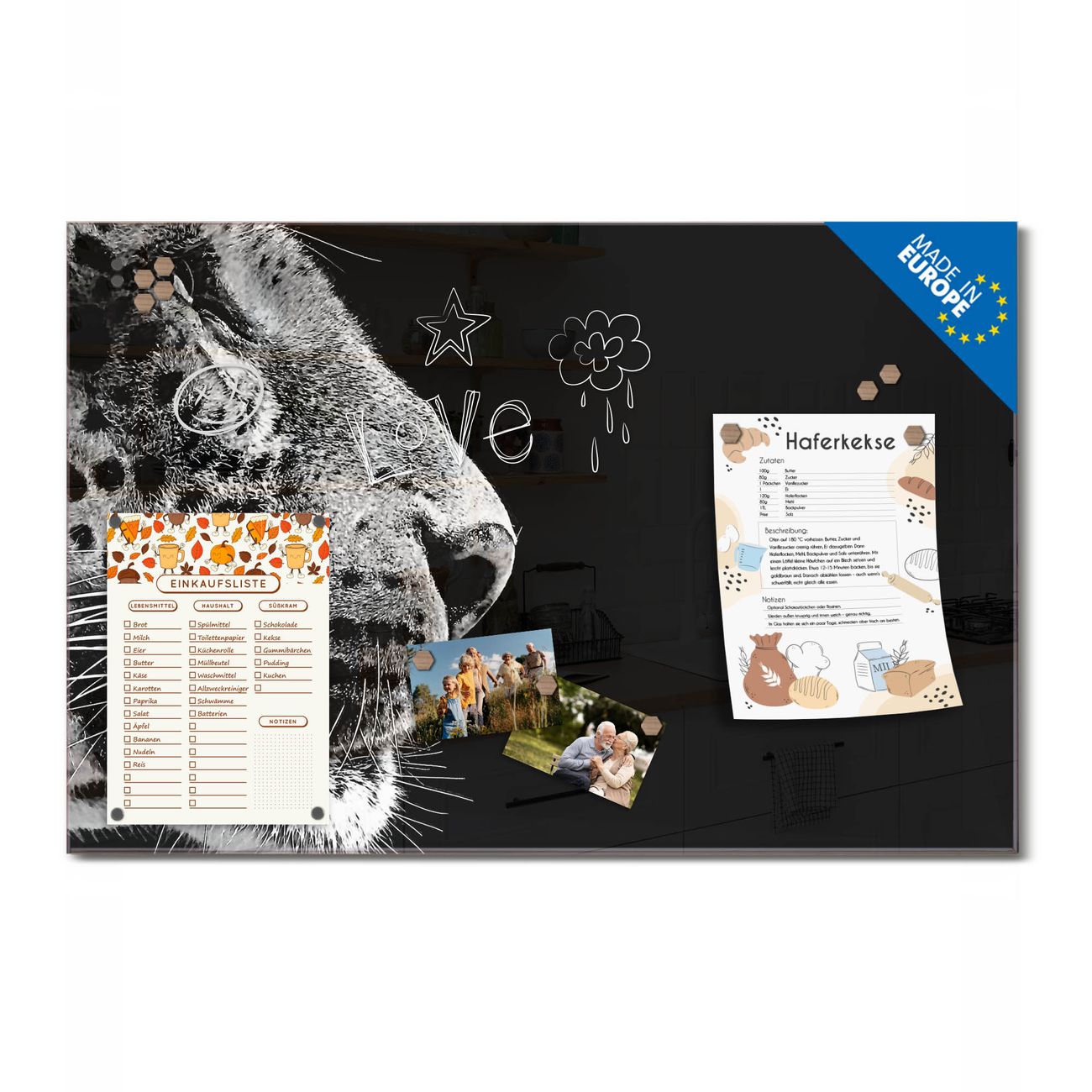 Auf der glatten Glasoberfläche lassen sich Termine, Rezepte oder Notizen ganz einfach mit Kreidestiften festhalten und rückstandslos entfernen. Starke Neodym-Magnete halten Ihre wichtigsten Erinnerungen sicher an Ort und Stelle. So entsteht Ihre ganz persönliche Ideenwand - jeden Tag neu.