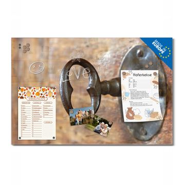 Material: 4mm Sicherheitsglas mit Metallrückwand Eigenschaften: beschreibbar, magnetisch, kratzfest Maße: 75x50x0,6cm, 5,63kg schwer Motiv Nummer 11300 Schlüssel Zubehör: inklusive 4 Neodym-Magnete