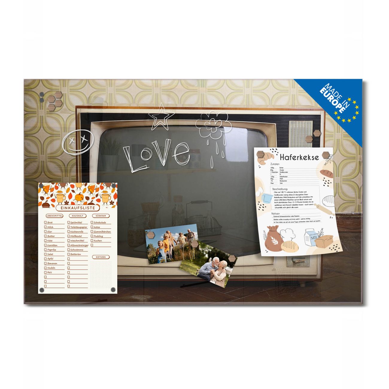 Glas Magnettafel im Querformat Motiv Schwarzweiß TV