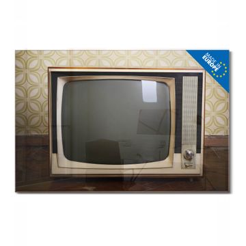 Material: 4mm Sicherheitsglas mit Metallrückwand Eigenschaften: beschreibbar, magnetisch, kratzfest Maße: 75x50x0,6cm, 5,63kg schwer Motiv Nummer 12079 Schwarzweiß TV Zubehör: inklusive 4 Neodym-Magnete