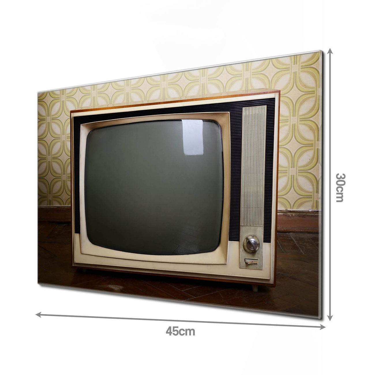 Material: 4mm Sicherheitsglas mit Metallrückwand Eigenschaften: beschreibbar, magnetisch, kratzfest Maße: 45x30x0,6cm, 2,03kg schwer Motiv Nummer 12079 Schwarzweiß TV Zubehör: inklusive 4 Neodym-Magnete
