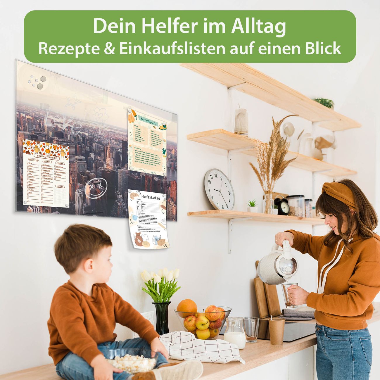 Ein Stück Design, das Ihren Alltag organisiert. Schreiben, heften, inspirieren - alles an einem Ort. Qualität, die man spürt. Montage leicht gemacht. Handwerk mit Herz - veredelt in Sachsen. Einzigartiges Design mit Motiv Motiv Skyline Beschreibbare Glasoberfläche, leicht zu reinigen Starke Magnetkraft durch Stahlrückwand Inklusive 4 Neodym-Magneten Flexible Montageoptionen Handveredelt in Sachsen - Qualität, die bleibt