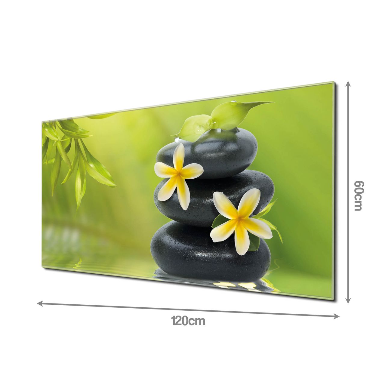 Material: 4mm Sicherheitsglas mit Metallrückwand Eigenschaften: beschreibbar, magnetisch, kratzfest Maße: 120x60x0,6cm, 10,80kg schwer Motiv Nummer 12820 Steine & Relax 4 Zubehör: inklusive 4 Neodym-Magnete