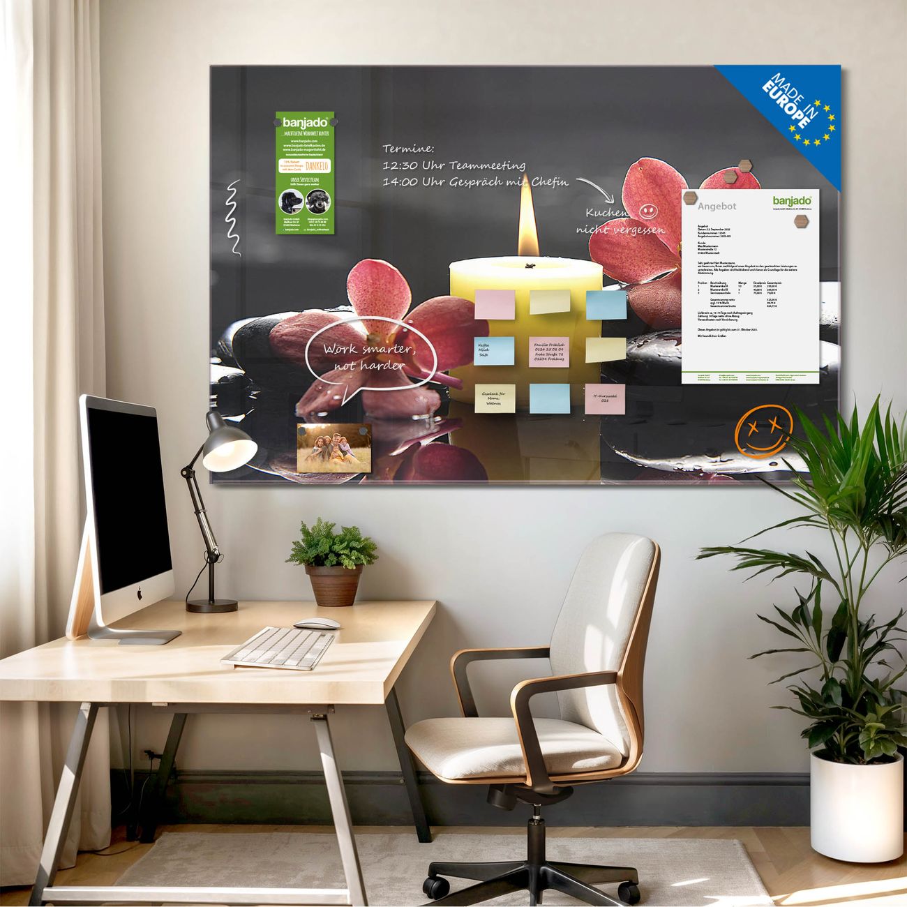Jede Glas Magnettafel wird in unserer Werkstatt von Hand gefertigt und sorgfältig geprüft. So erhalten Sie ein echtes Qualitätsprodukt, das Funktion und Ästhetik perfekt vereint.?? Warum banjado?