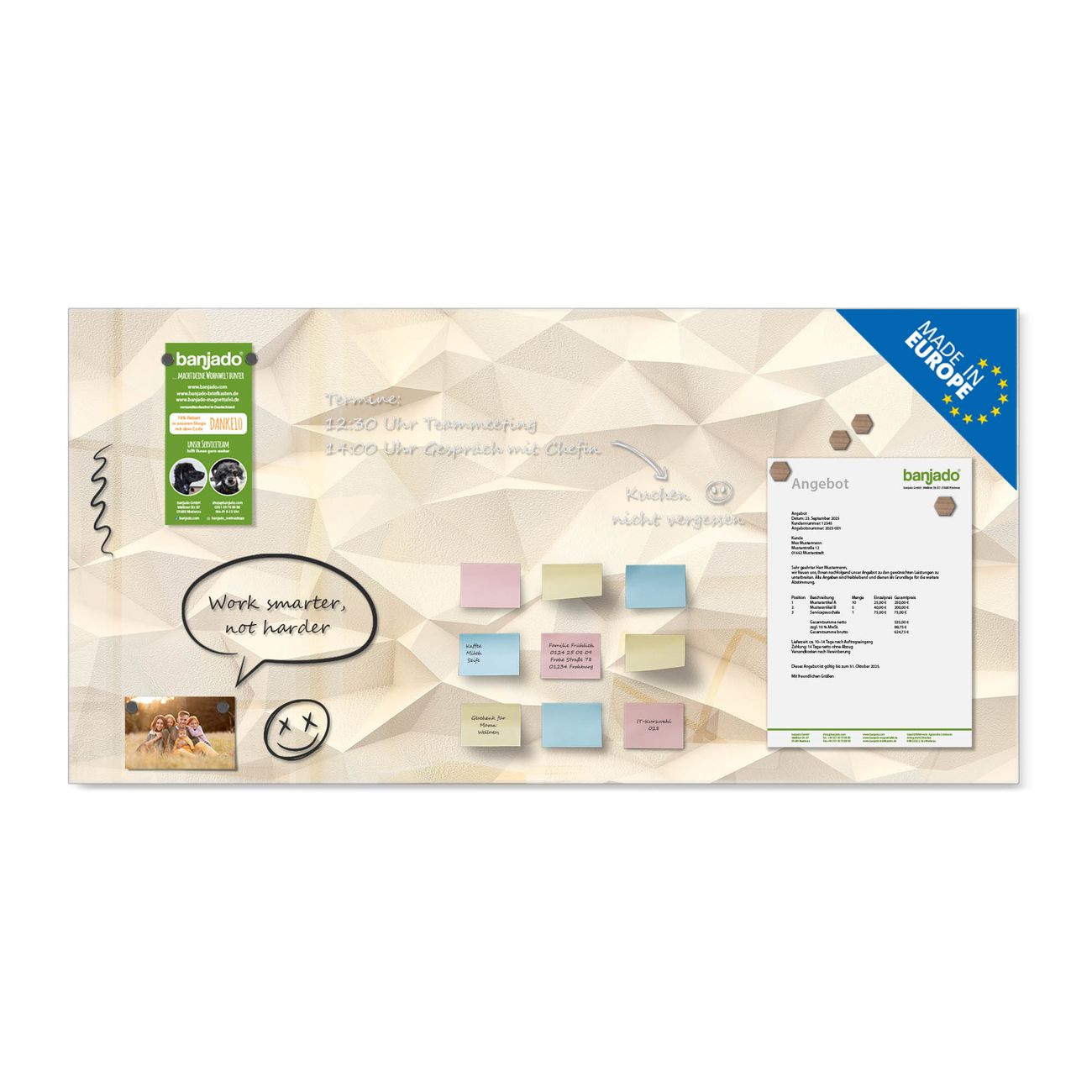 Jede Glas Magnettafel wird in unserer Werkstatt von Hand gefertigt und sorgfältig geprüft. So erhalten Sie ein echtes Qualitätsprodukt, das Funktion und Ästhetik perfekt vereint.?? Warum banjado?