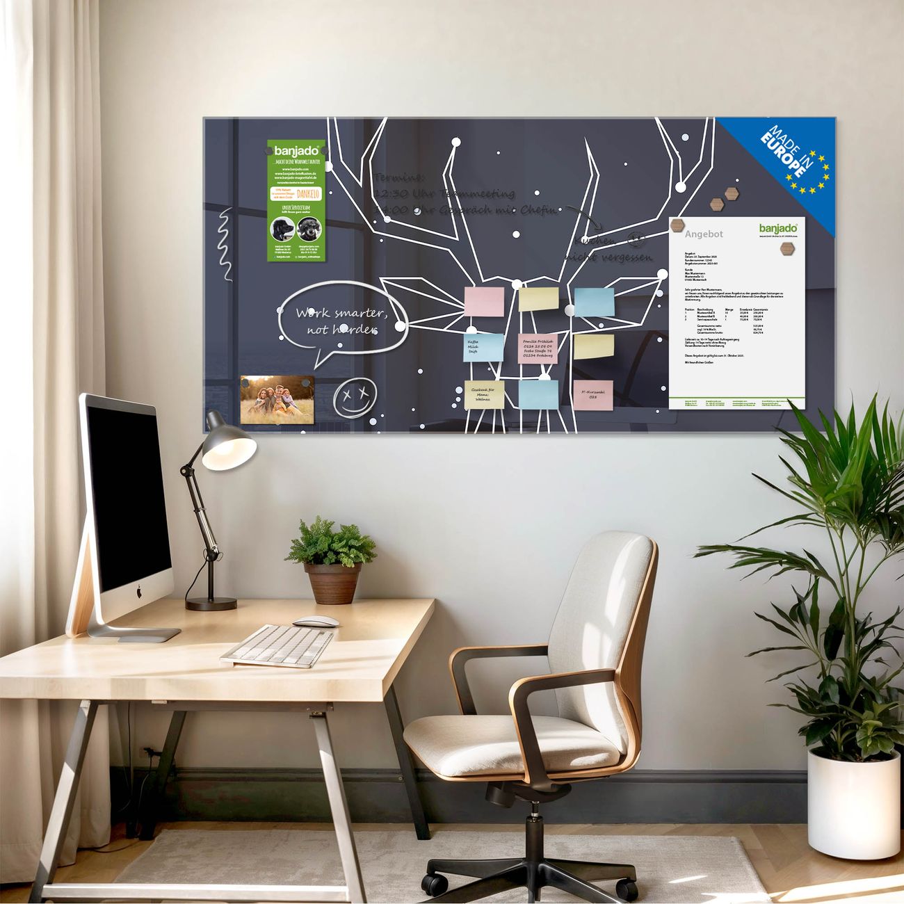 Jede Glas Magnettafel wird in unserer Werkstatt von Hand gefertigt und sorgfältig geprüft. So erhalten Sie ein echtes Qualitätsprodukt, das Funktion und Ästhetik perfekt vereint.?? Warum banjado?