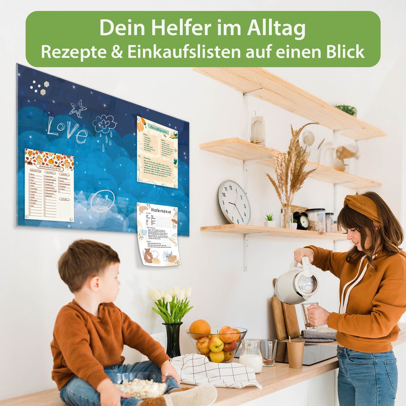 Ein Stück Design, das Ihren Alltag organisiert. Schreiben, heften, inspirieren - alles an einem Ort. Qualität, die man spürt. Montage leicht gemacht. Handwerk mit Herz - veredelt in Sachsen. Einzigartiges Design mit Motiv Motiv Sternenhimmel 2 Beschreibbare Glasoberfläche, leicht zu reinigen Starke Magnetkraft durch Stahlrückwand Inklusive 4 Neodym-Magneten Flexible Montageoptionen Handveredelt in Sachsen - Qualität, die bleibt