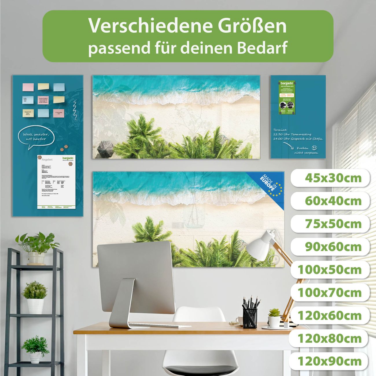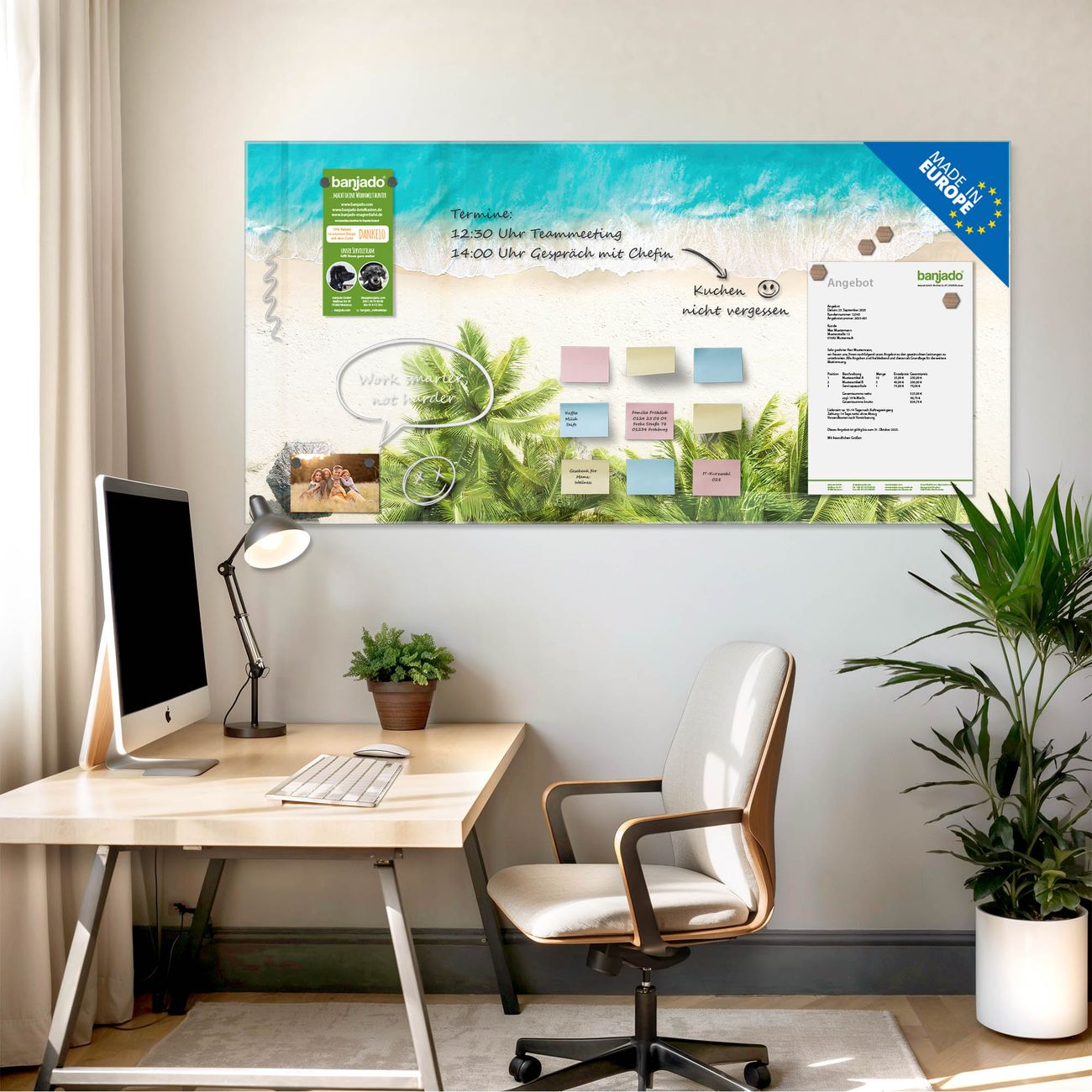 Jede Glas Magnettafel wird in unserer Werkstatt von Hand gefertigt und sorgfältig geprüft. So erhalten Sie ein echtes Qualitätsprodukt, das Funktion und Ästhetik perfekt vereint.?? Warum banjado?