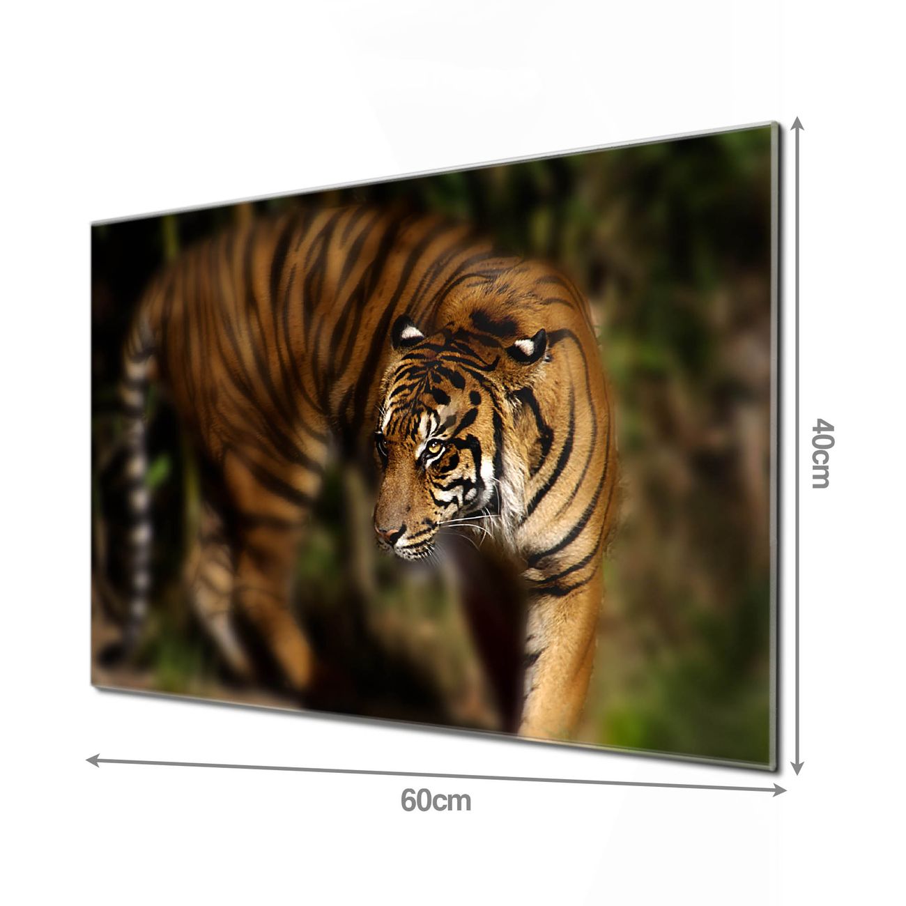 Material  4mm Sicherheitsglas mit Metallrückwand Eigenschaften  beschreibbar, magnetisch, kratzfest Maße  60x40x0,6cm, 3,6kg schwer Motiv  Nummer 10502 Tiger Zubehör  inklusive 4 Neodym-Magnete