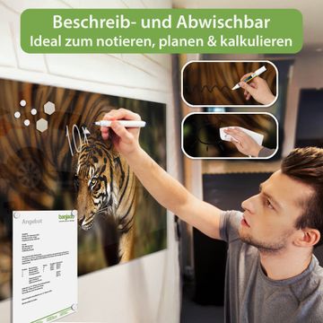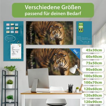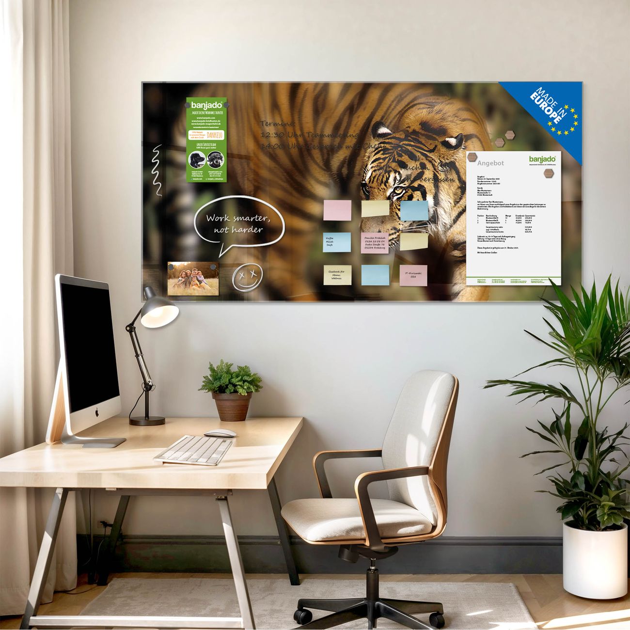 Die banjado Glas Magnettafel mit dem Motiv Motiv Tiger verbindet Funktionalität mit Stil. Sie ersetzt das Zettelchaos durch klare Strukturen und bringt dabei eine warme, natürliche Atmosphäre in Ihr Zuhause. Ob im Büro, in der Küche oder im Eingangsbereich - dieses Design-Board zieht Blicke an und sorgt für Ordnung mit Charakter.