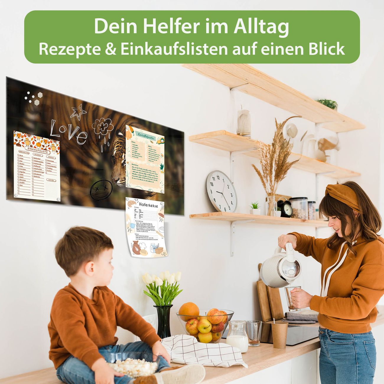 Ein Stück Design, das Ihren Alltag organisiert. Schreiben, heften, inspirieren - alles an einem Ort. Qualität, die man spürt. Montage leicht gemacht. Handwerk mit Herz - veredelt in Sachsen. Einzigartiges Design mit Motiv Motiv Tiger Beschreibbare Glasoberfläche, leicht zu reinigen Starke Magnetkraft durch Stahlrückwand Inklusive 4 Neodym-Magneten Flexible Montageoptionen Handveredelt in Sachsen - Qualität, die bleibt
