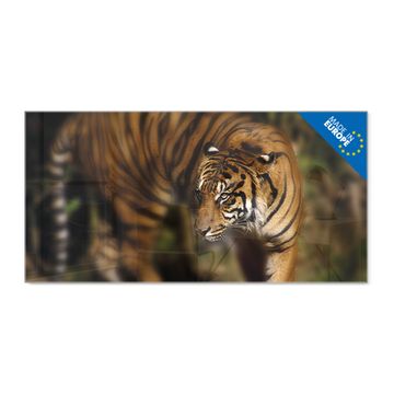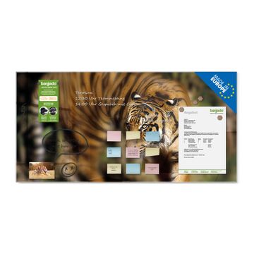 Material: 4mm Sicherheitsglas mit Metallrückwand Eigenschaften: beschreibbar, magnetisch, kratzfest Maße: 100x50x0,6cm, 7,50kg schwer Motiv Nummer 10502 Tiger Zubehör: inklusive 4 Neodym-Magnete