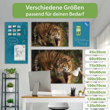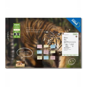 Die banjado Glas Magnettafel mit dem Motiv Motiv Tiger verbindet Funktionalität mit Stil. Sie ersetzt das Zettelchaos durch klare Strukturen und bringt dabei eine warme, natürliche Atmosphäre in Ihr Zuhause. Ob im Büro, in der Küche oder im Eingangsbereich - dieses Design-Board zieht Blicke an und sorgt für Ordnung mit Charakter.