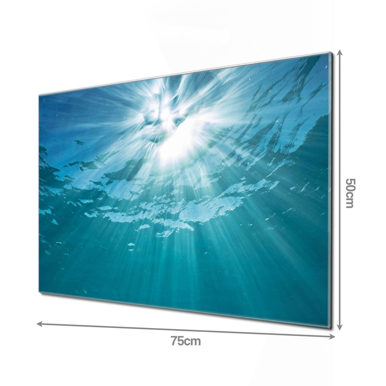 Material: 4mm Sicherheitsglas mit Metallrückwand Eigenschaften: beschreibbar, magnetisch, kratzfest Maße: 75x50x0,6cm, 5,63kg schwer Motiv Nummer 12867 Unter der Oberfläche Zubehör: inklusive 4 Neodym-Magnete
