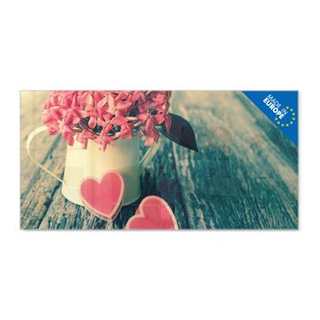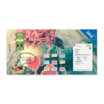 Material: 4mm Sicherheitsglas mit Metallrückwand Eigenschaften: beschreibbar, magnetisch, kratzfest Maße: 110x55x0,6cm, 9,08kg schwer Motiv Nummer 12123 Valentin Zubehör: inklusive 4 Neodym-Magnete