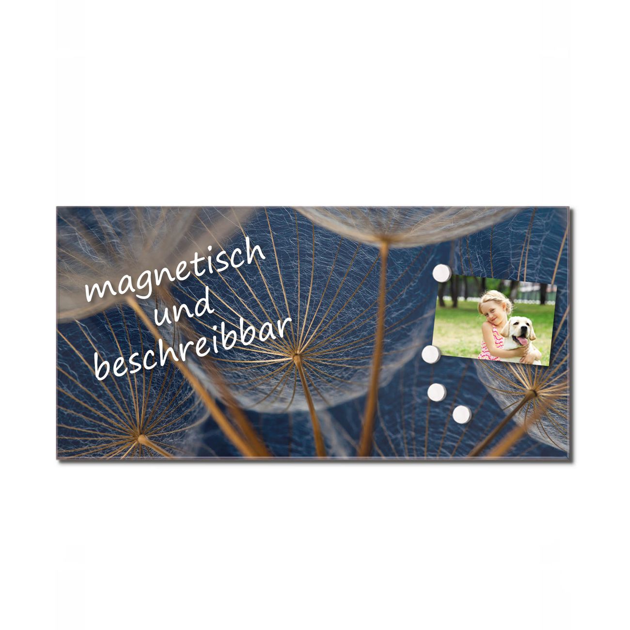 Material: 4mm Sicherheitsglas mit Metallrückwand Eigenschaften: beschreibbar, magnetisch, kratzfest Maße: 120x60x0,6cm, 10,80kg schwer Motiv Nummer 12783 Verblüht Zubehör: inklusive 4 Neodym-Magnete