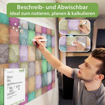 Die banjado Glas Magnettafel mit dem Motiv Motiv Verwaschene Quadrate verbindet Funktionalität mit Stil. Sie ersetzt das Zettelchaos durch klare Strukturen und bringt dabei eine warme, natürliche Atmosphäre in Ihr Zuhause. Ob im Büro, in der Küche oder im Eingangsbereich - dieses Design-Board zieht Blicke an und sorgt für Ordnung mit Charakter.