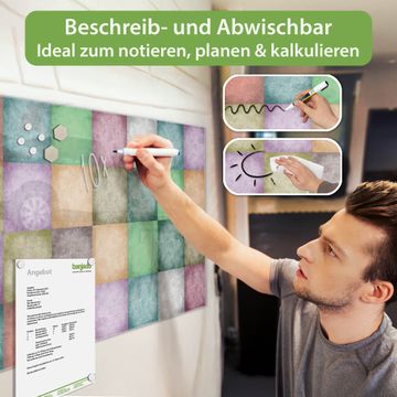 Die banjado Glas Magnettafel mit dem Motiv Motiv Verwaschene Quadrate verbindet Funktionalität mit Stil. Sie ersetzt das Zettelchaos durch klare Strukturen und bringt dabei eine warme, natürliche Atmosphäre in Ihr Zuhause. Ob im Büro, in der Küche oder im Eingangsbereich - dieses Design-Board zieht Blicke an und sorgt für Ordnung mit Charakter.