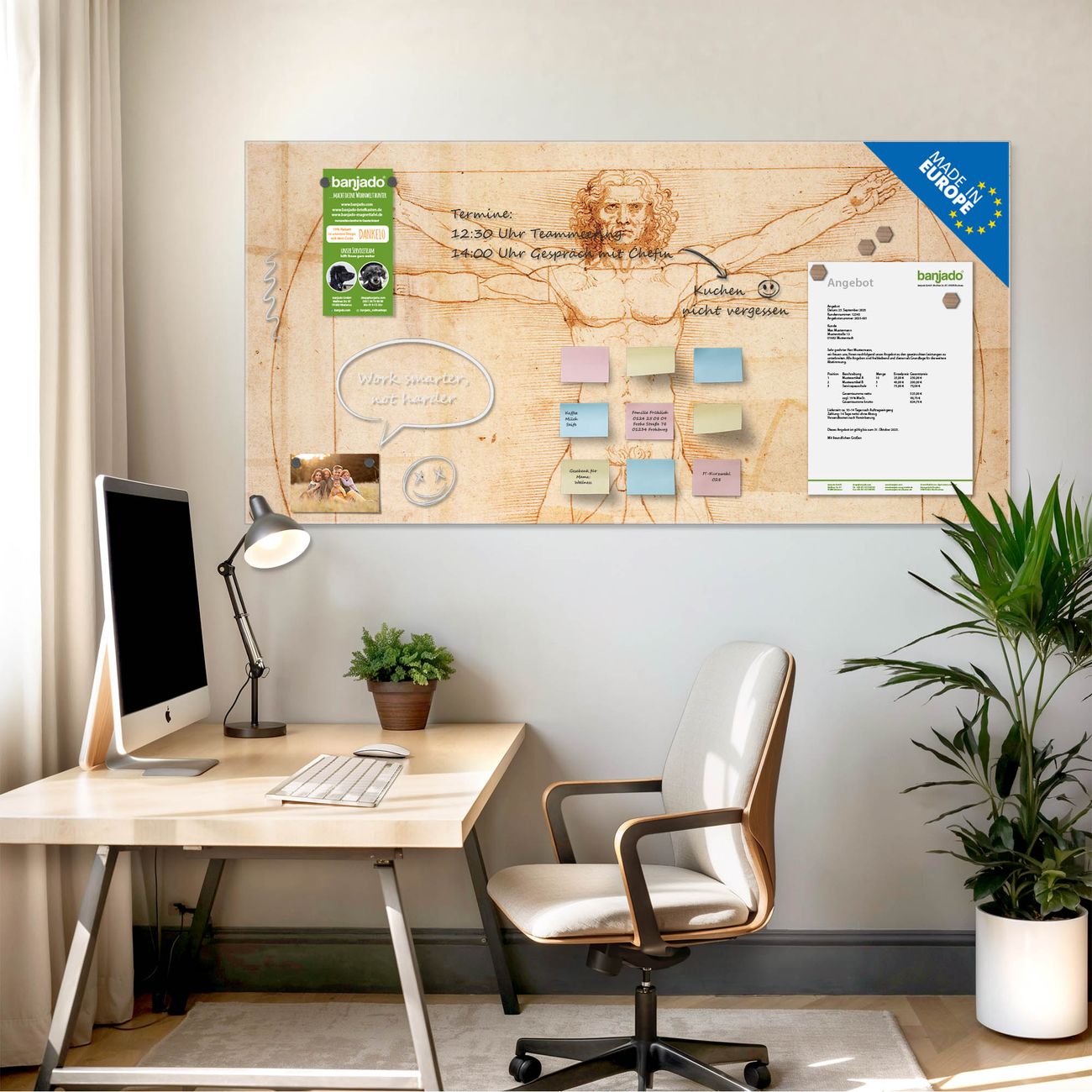 Die banjado Glas Magnettafel mit dem Motiv Motiv Vitruvianische Figur verbindet Funktionalität mit Stil. Sie ersetzt das Zettelchaos durch klare Strukturen und bringt dabei eine warme, natürliche Atmosphäre in Ihr Zuhause. Ob im Büro, in der Küche oder im Eingangsbereich - dieses Design-Board zieht Blicke an und sorgt für Ordnung mit Charakter.