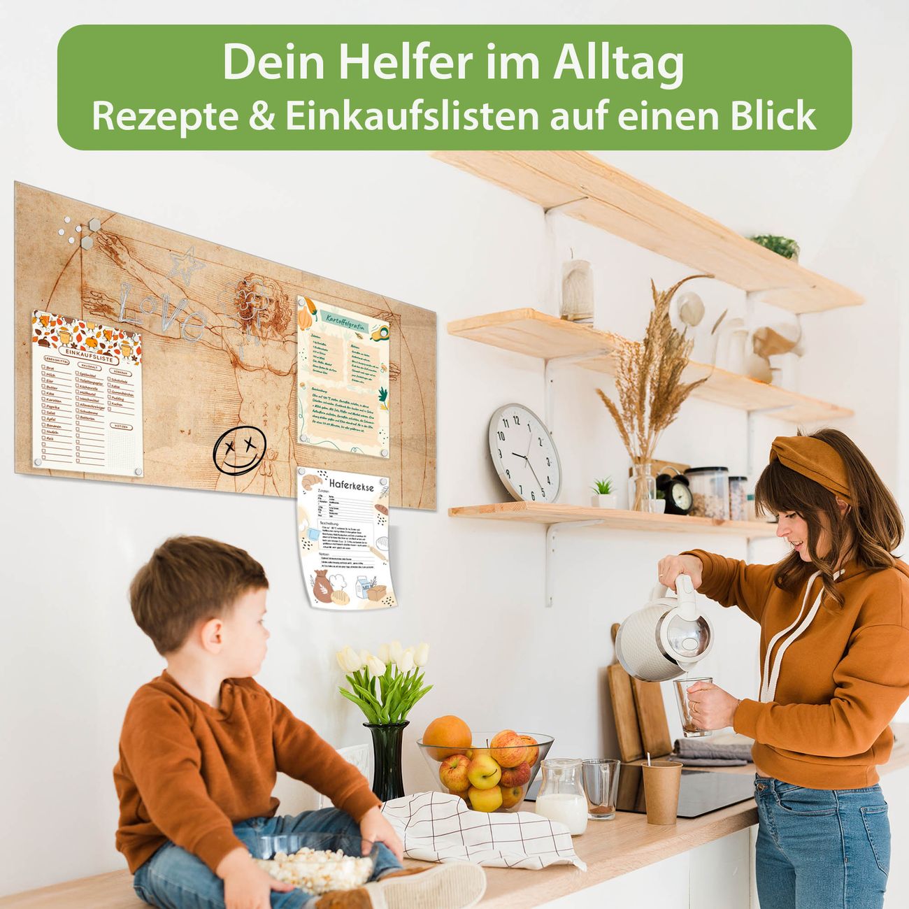 Ein Stück Design, das Ihren Alltag organisiert. Schreiben, heften, inspirieren - alles an einem Ort. Qualität, die man spürt. Montage leicht gemacht. Handwerk mit Herz - veredelt in Sachsen. Einzigartiges Design mit Motiv Motiv Vitruvianische Figur Beschreibbare Glasoberfläche, leicht zu reinigen Starke Magnetkraft durch Stahlrückwand Inklusive 4 Neodym-Magneten Flexible Montageoptionen Handveredelt in Sachsen - Qualität, die bleibt